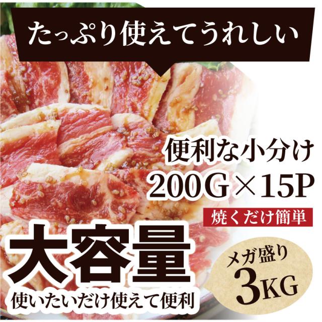 タレ漬け牛カルビ(牛バラ) 3kg(200g×15袋) 焼肉用 焼くだけ バーベキュー BBQ 肉 タレ 秘伝 焼肉 やきにく アウトドア お家焼肉 レジャー 冷凍 送料無料 キャンプ キャンプ飯 *当日発送対象 お肉の しゃぶまる