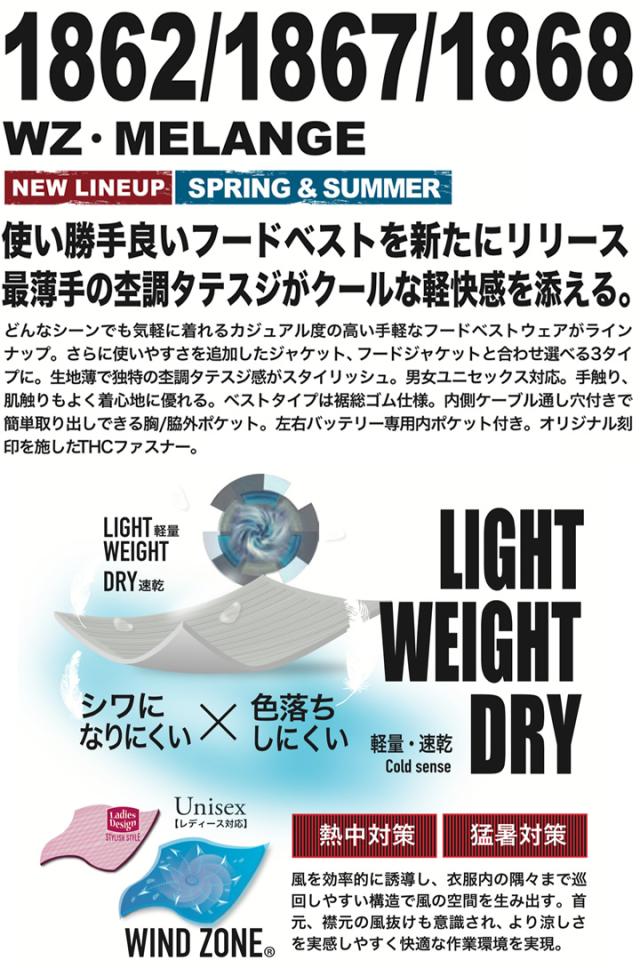 【空調服】ファン対応ウェア メランジジャケット 1867 ブルゾン ジャンパー 中国産業 WIND ZONE 男女兼用 メンズ レディース 軽量 速乾 熱中症対策 猛暑対策 作業着 作業服 電動ファン対応作業服