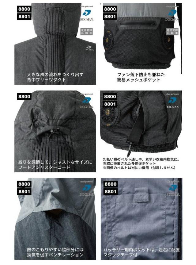 【空調服】ファン対応ウェア ドッグマン フードジャケット WZテクニカル 8800【服のみ】熱中症対策 ブルゾン ジャンパー 反射 アウトドア スポーツ メンズ 作業着 作業服 中国産業 電動ファン対応作業服