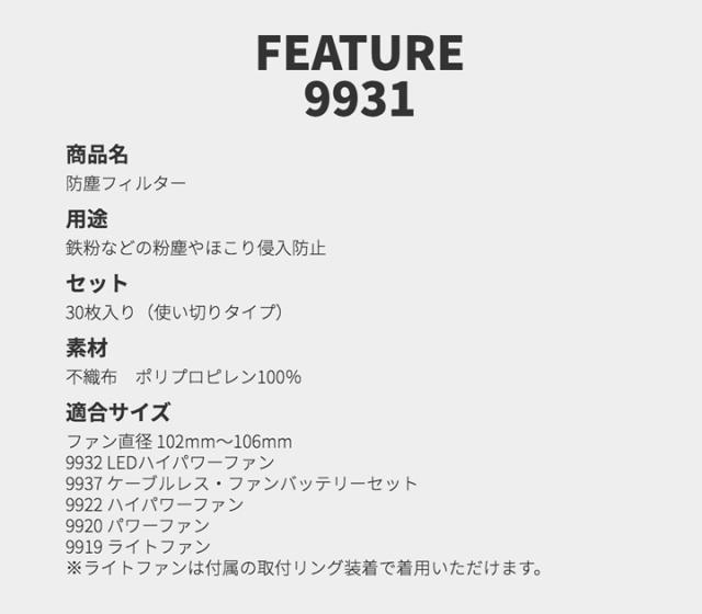 【空調服】防塵フィルター ホワイト (30枚入り) 9931 CUC Divaiz 熱中症対策 猛暑対策 作業着 作業服 中国産業 電動ファン付き作業服