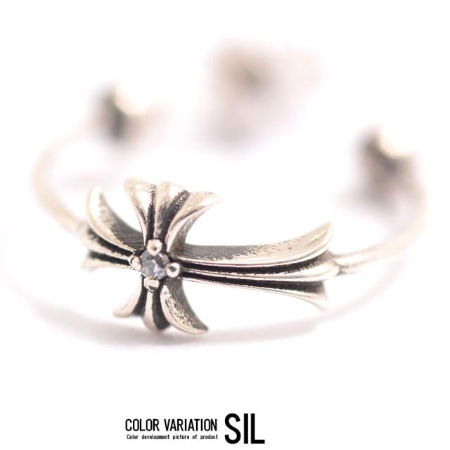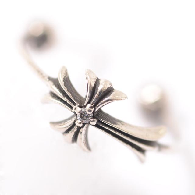 バングルのような輪っかの形をしたピアスにクロスモチーフをデザイン。