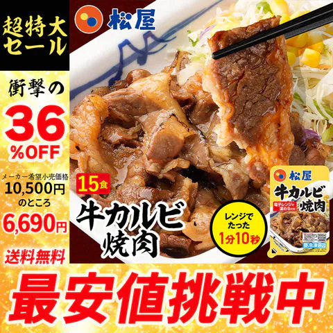 【メーカー希望小売価格10500円→6690円】 松屋 牛カルビ焼肉60g 15個セット まつや 受験生応援 牛丼 食品 グルメ 冷凍 冷凍食品 おかず 惣菜 業務用 お弁当 レンチン お試し 非常食