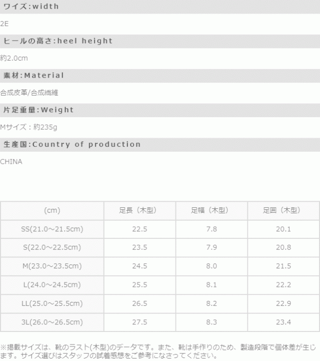 足長(木型):22.5cm/足幅(木型):7.8cm