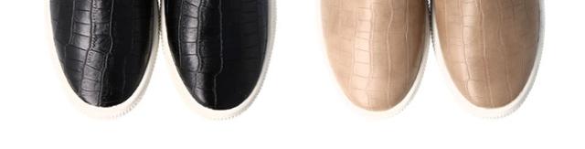 - スリッポンのリピです!前回は黒クロコ、今回はベージュクロコを注文しました。私の足にはピッタリで仕事用に履いています。