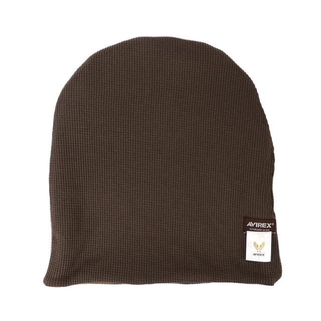 ミリタリーブランドのAVIREX/アビレックスから、ニットキャップが入荷。ワンポイントでロゴが配置されたシンプルなデザインで裏生地は吸収性に優れているワッフル生地仕様。裏側のタグを切ればリバーシブル着用も可能!気分によってチェンジすることができます。大きめのロングタイプなのでゆったりと被れるシルエットが特徴。