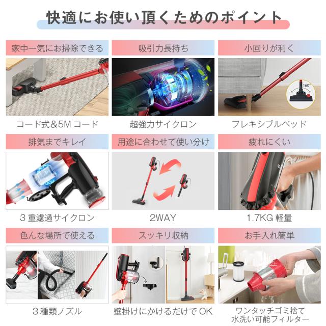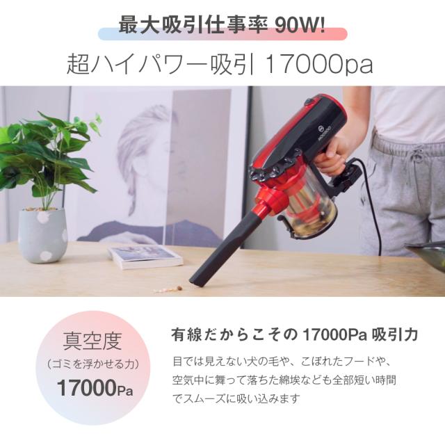\年末家電SALE★クーポンで10800円→5800円!/掃除機 コード式 サイクロン ハンドクリーナー 17000pa 450W 超強吸引力掃除機 PSE認証済み 一年保証 送料無料