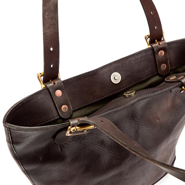 | 19世紀初頭、米国で氷のブロックを運ぶ目的で使用された、三角マチのトートバッグをモダナイズした縦型トートバッグです。肩にかけられるロングハンドル式。(※ハンドルの長さは5段階調整可)負荷のかかる箇所はヘヴィーオンスな馬具の補強に使われる、米国製コッパーリベットを打ち込み、ヘビーデューティに仕上げました。ライナーは堅牢度の高いキャンバスを使用。自転車の籠にも収まる、利便性の高いA4対応サイズです。 ※天然皮革を使用したハンドメイド製品の性質上、商品ごとにシボ感や色合いなどに多少個体差がある場合があり、 摩擦、汗、水分などにより色移りする場合がございますが、天然皮革ならではの経年変化を楽しんでいただける素材となります。 |