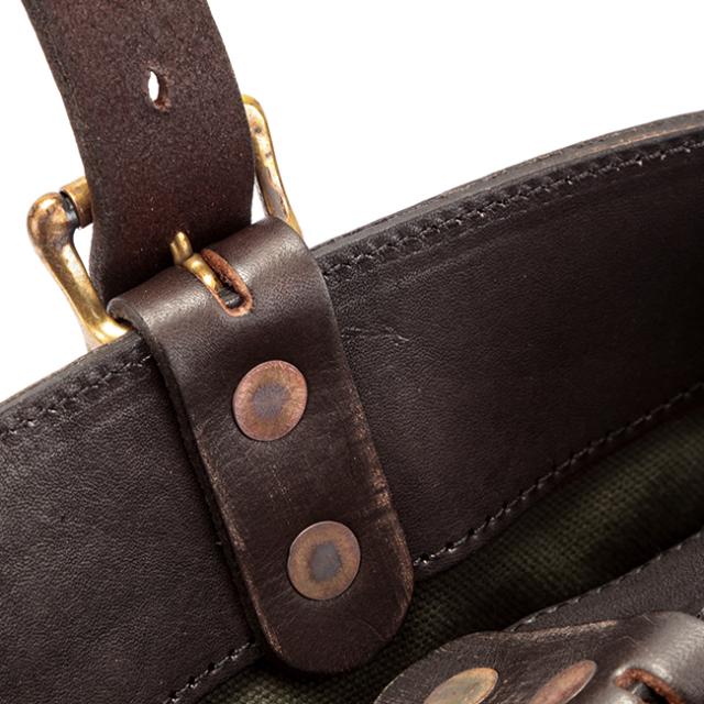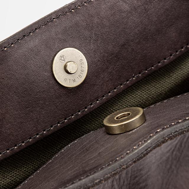 レザーと同様に経年変化で渋みの出る、真鍮製の金具類を使用しています。