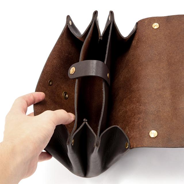 | フランスのギャルソンが使用したギャルソンウォレットをモダナイズしたレザーショルダーバッグです。3つのマチつきポケットが施されたジャバラ構造です。ハギのない1パーツで構成した、立体的なフォルムが特徴です。ショルダーは着脱でき、クラッチバッグやバッグインバッグとしても使用できます。 |