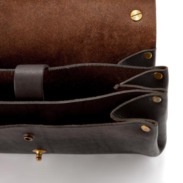 レザーと同様に経年変化で渋みの出る、真鍮製の金具類を使用しています。