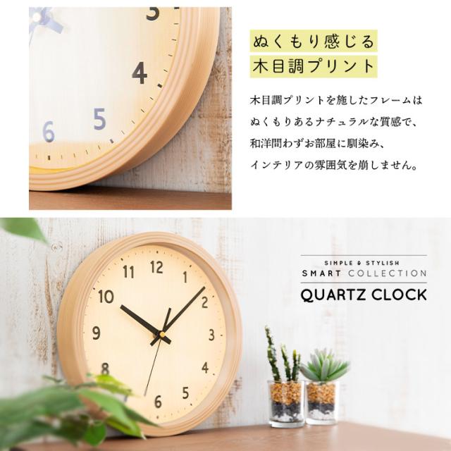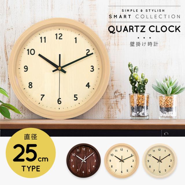 ★全品対象250円offクーポン★ 時計 壁掛け 掛け時計 アンティーク 軽量 薄型 クオーツ式 木目調 北欧 かわいい ウォールクロック 壁かけ シンプル 乾電池 子供部屋 PWCR-25 新生活 インテリア
