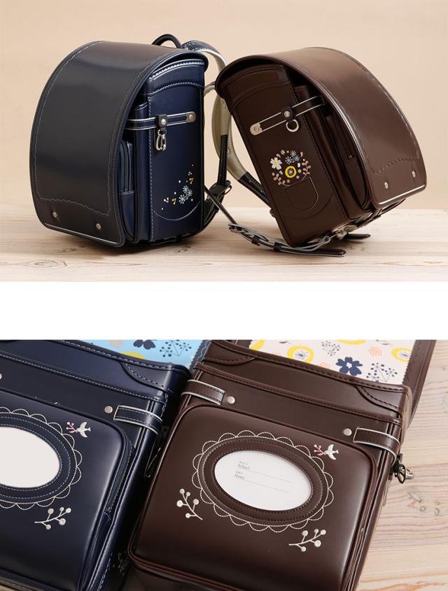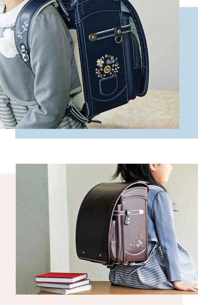 女の子のランドセルの中で、落ち着いた色味のランドセルが少ないことから、北欧風のデザインに合うようにあえてネイビーとブラウンをセレクト。ブルーのステッチがポケットのデザインをより引きたてたミュールネイビー。ショコラブラウンは、落ち着いた見た目ながらも、ランドセルを開けた時の色味が柔らかく、あたたかみがあります。