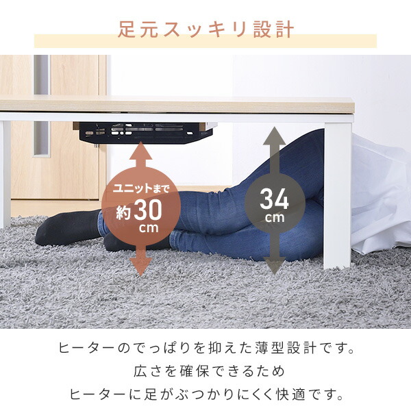 | 商品説明 | ●【こたつ本体】 ●電源:100V (50Hz/60Hz) ●ヒーター型番:NCH-302 ●消費電力:300W ●電気代目安(1時間あたり):(強)4.03円、(弱)1.86円 ※電力料金目安単価1kWhあたり31円(税込)で算出 ●電源コード:中間入切スイッチ ●電源コード長さ:3m ●メーカー保証:1年 【こたつ布団】 ●さらふわな肌触りのフランネル生地を両面に使用 ●ほこりの出にくい、ポリエステル綿をたっぷり1.4kg ●取っ手付き収納袋付きでオフシーズンもコンパクトに収納 ●無地柄はリバーシブルで使用可能 ※圧縮状態でお届けします。開封後、およそ1日ほどで復元します。 ※2025年8月よりノルディックグレー色、ノルディックモカ色を追加しております。 |