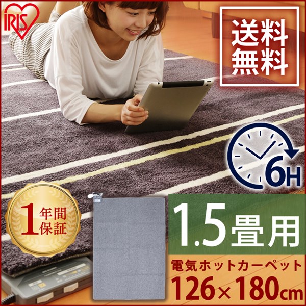 ホットカーペット 1.5畳 本体 126×180cm アイリスオーヤマ ホットカーペット IHC-15-H 電気カーペット 電気マット カーペット 1.5畳 1.5畳用 温度調節 簡単操作 ダニ退治 自動切りタイマー 送料無料