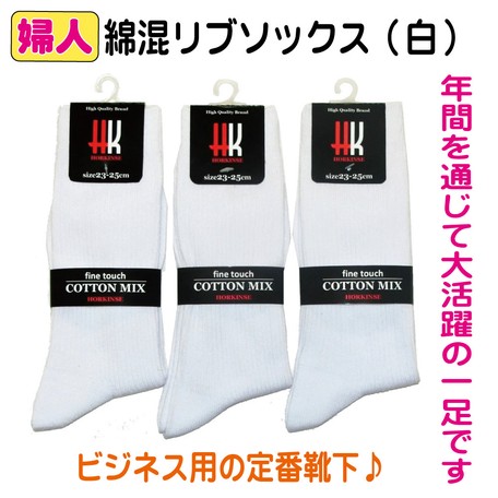 即発送【今なら必ずポイント20%(300円分)還元!!】【(15足セット)婦人 綿混 リブソックス(白)】 婦人 リブソックス ソックス 靴下 15足セット