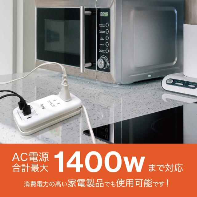 コンセントは、最大1400Wまで対応していますので、消費電力の高い家電でもご使用可能です。