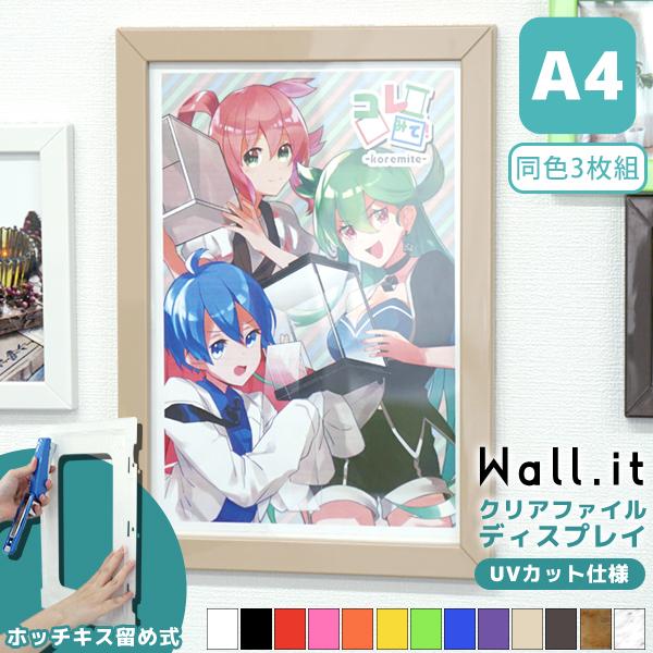 3個セット WALL.IT クリアファイル 額縁 a4 収納 ポスターフレーム フォトフレーム 賞状額 パネル おしゃれ クリアファイルホルダー かわいい アニメ キャラクター 飾る 壁掛け クリヤファイル a4フレーム ホッチキス 賃貸