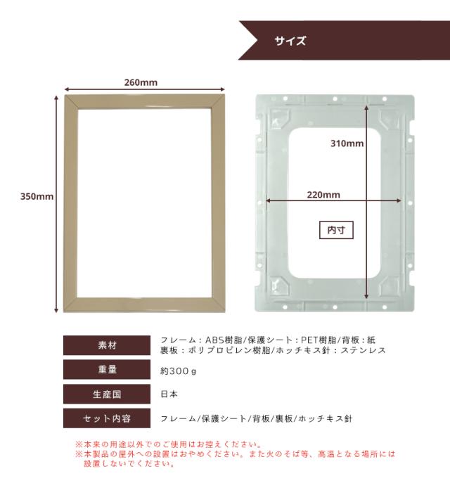 セット内容:裏板、フレーム、保護シート、背板、ホッチキス針