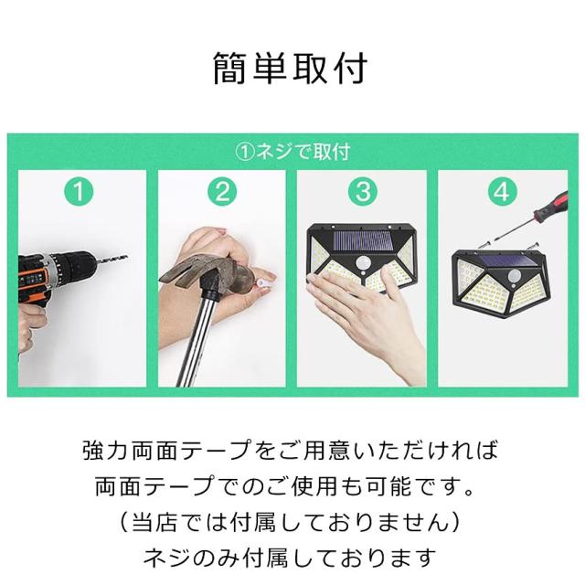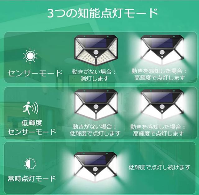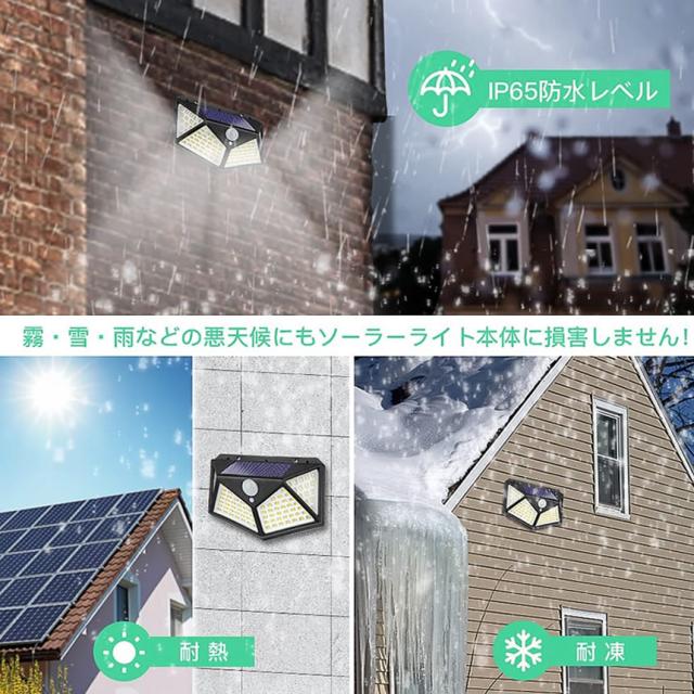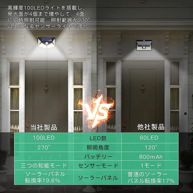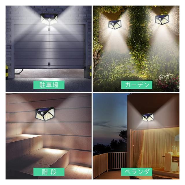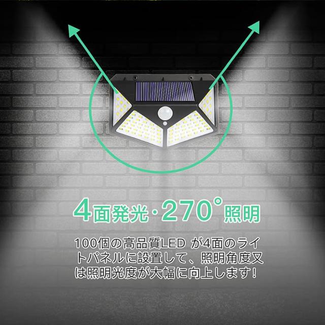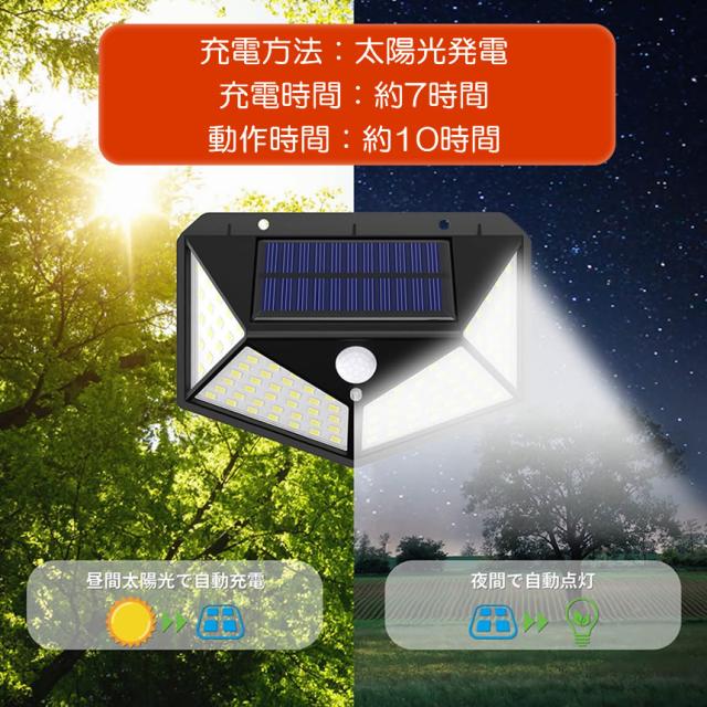 100Ledライト一個で屋外を明るく照らして照明効果抜群です。
