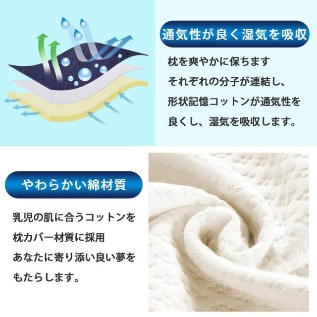 温感形状記憶コットンにより、圧を分散させ頚椎を保護します