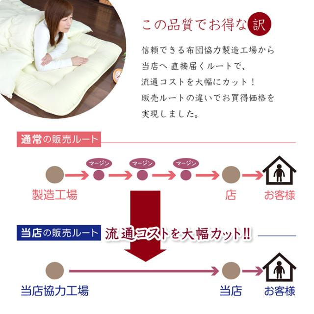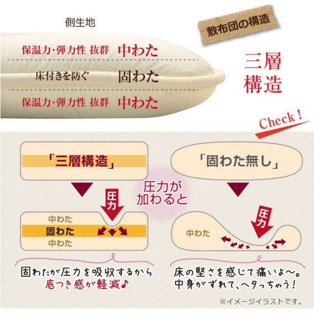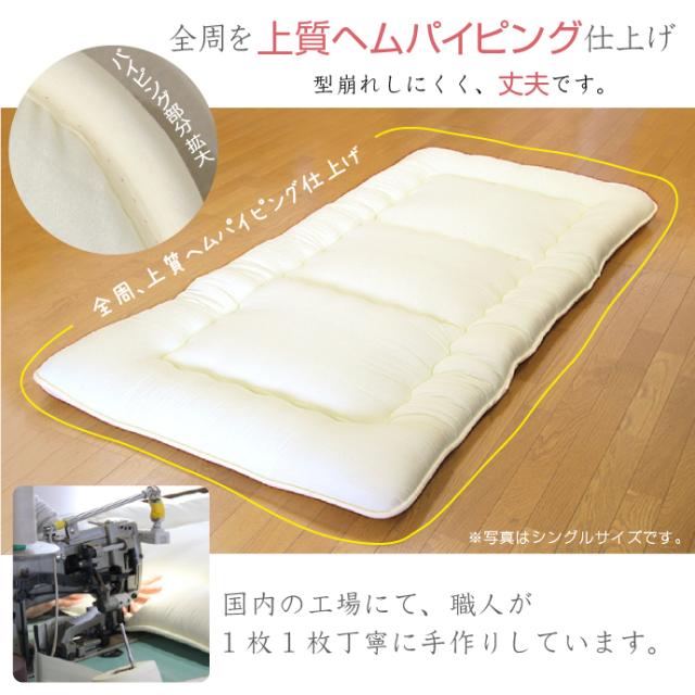 敷き布団は三層固わたタイプ 全周を上質ヘム パイピング仕上げ