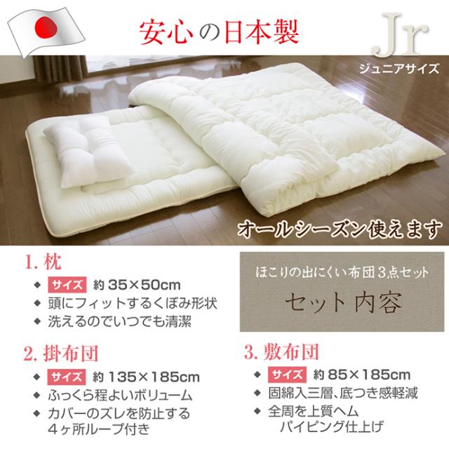 高級な国産品【掛布団+敷布団+枕 セット ジュニアサイズ】産地直送