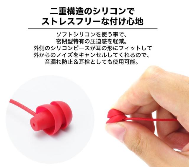 外側のシリコンピースが耳に優しくフィットするので、就寝時の雑音や音漏れを軽減する事ができます。