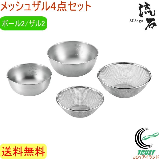 サス・ガ ストロングメッシュザル4点セット SUS-Z800 送料無料 日本製 燕三条産 ステンレス ザル メッシュザル ボウル 丈夫