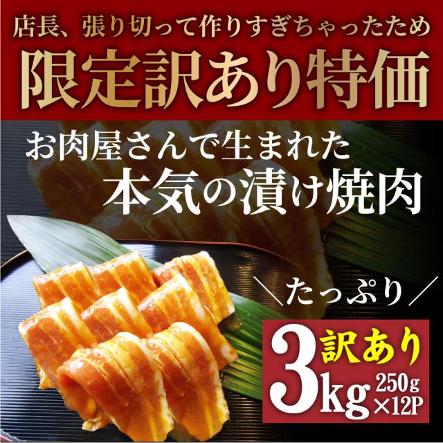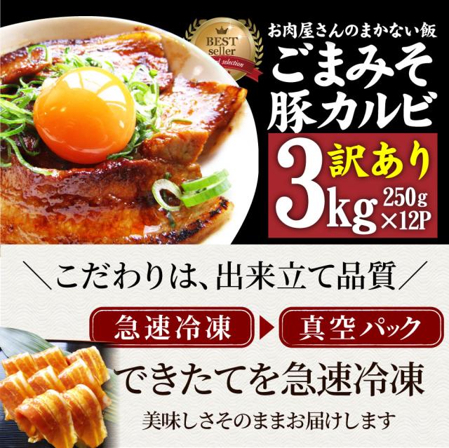 訳あり ごまみそ豚カルビ焼肉 お肉屋さんの本気の焼肉 メガ盛り 3kg (250g×12) 訳アリ 焼肉セット 在庫処分 秘伝のタレ漬け 豚肉 カルビ バーベキュー BBQ 肉 焼肉 豚みそ 焼くだけ 食べ物 アウトドア お家焼肉 レジャー 小分け 送料無料 キャンプ キャンプ飯