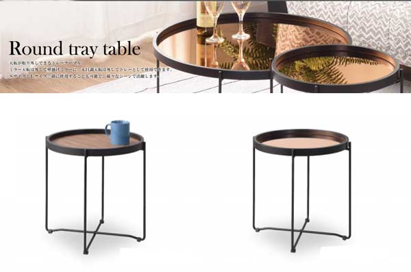 ミラー天板は外して壁掛けミラーに、木目調天板は外してトレーとして使用できます。