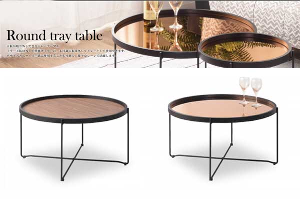 ミラー天板は外して壁掛けミラーに、木目調天板は外してトレーとして使用できます。