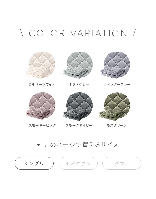 - ミストグレーを購入 ふわふわして、生地感はとてもいいです。 家のマットレスにピッタリでした。 色違いも欲しくなる