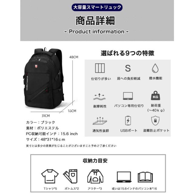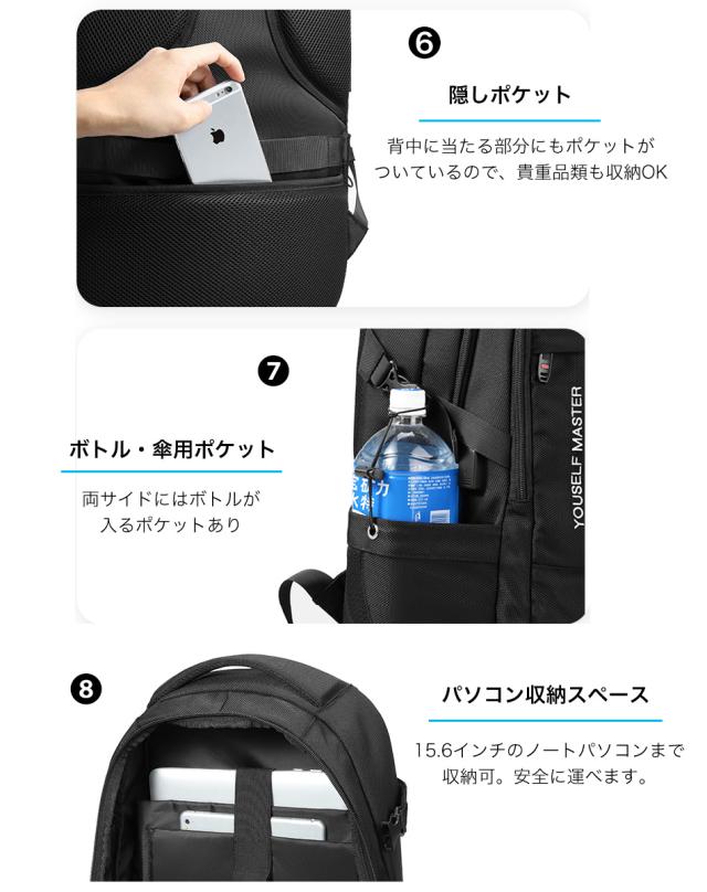 リュック メンズ おしゃれ 大容量 学生 スポーツ 社会人 防水 ブラック 黒 高機能 PC収納 パソコン 送料無料