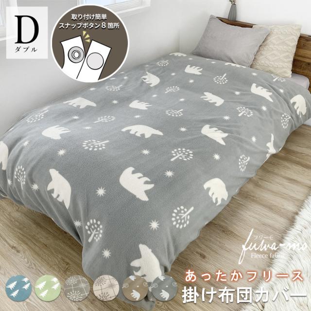 あったか フリース プリント 掛け布団カバー Dサイズ ダブル 190×210cm 暖かい 冬用 寝具 布団カバー 掛けカバー ふわふわ 洗える フリース 柄 手間なしらくちん スナップボタン 北欧 かわいい 木 冬 雪柄 スノー柄 ボタン式