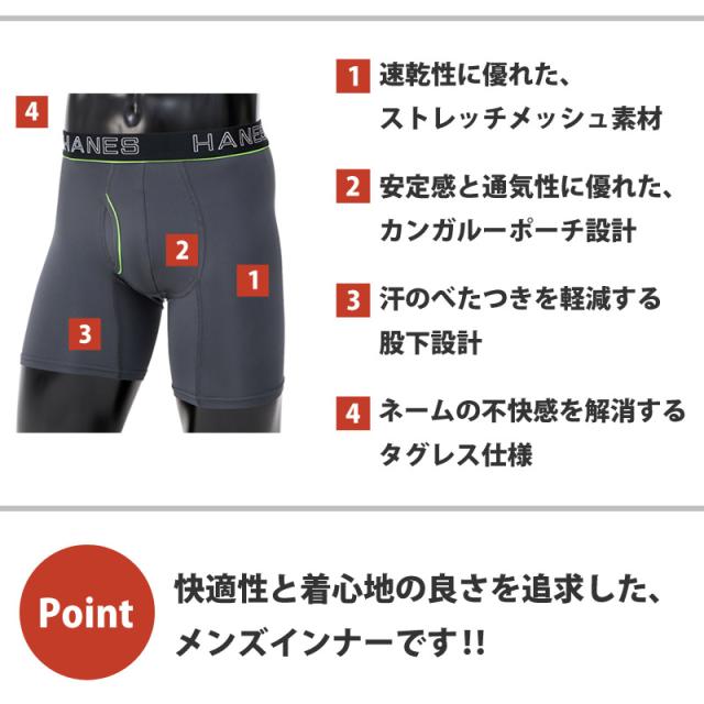 ヘインズ (Hanes) メンズ インナーパンツ M/L/LL HM6EQ102 アンダーウェア ボクサーパンツ 1分丈パンツ 吸汗速乾 ボクサーブリーフ 抗菌防臭 紳士 肌着 カンガルーポーチ ムレない ポジション安定 スポーツウェア【メール便発送】