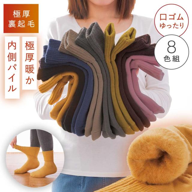【8足セット】 靴下 暖かい 厚手 冬 あったか 裏起毛 レディース セット ゆったり 冷え対策 冷え症 あったかグッズ 防寒 ふわふわ 足首ゆったりパイル起毛靴下 8色組