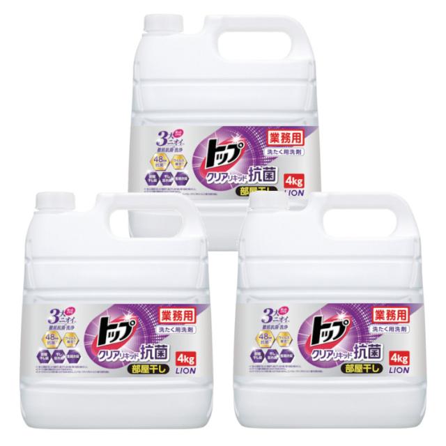 トップ クリアリキッド 洗剤 トップ クリアリキッド 抗菌 4kg 3個セット 業務用 洗剤 洗濯洗剤 トップ クリアリキッド 抗菌 部屋干し臭 戻り乾き臭 干し忘れ臭 業務用 衣料用洗剤 大容量 洗濯洗剤 業務用 衣料用洗剤 部屋干し 送料無料