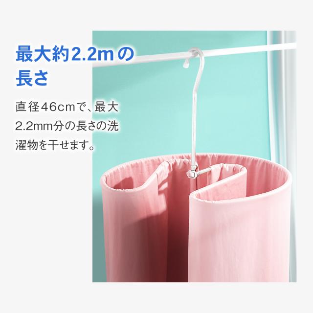 幅2.2mの衣類を約46cmのスペースで干すことができます。