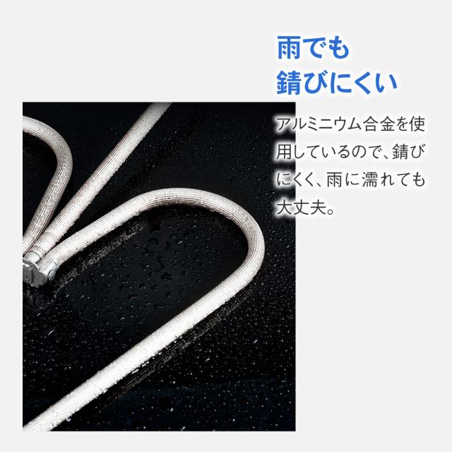 素材はアルミニウム合金を使用しているので、錆びにくく、雨に濡れても大丈夫。