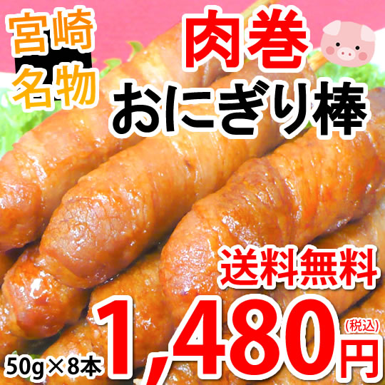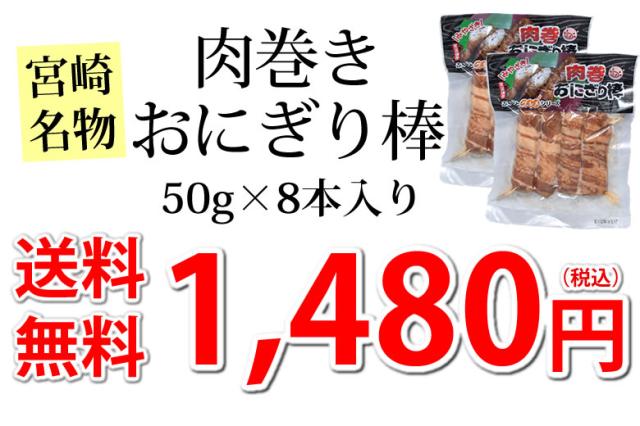 肉巻きおにぎり棒 送料無料 50g×8本 肉巻きおにぎり 宮崎名物 お試し お取り寄せ お取り寄せグルメ 焼き鳥 焼肉 おつまみ 豚肉 コシヒカリ