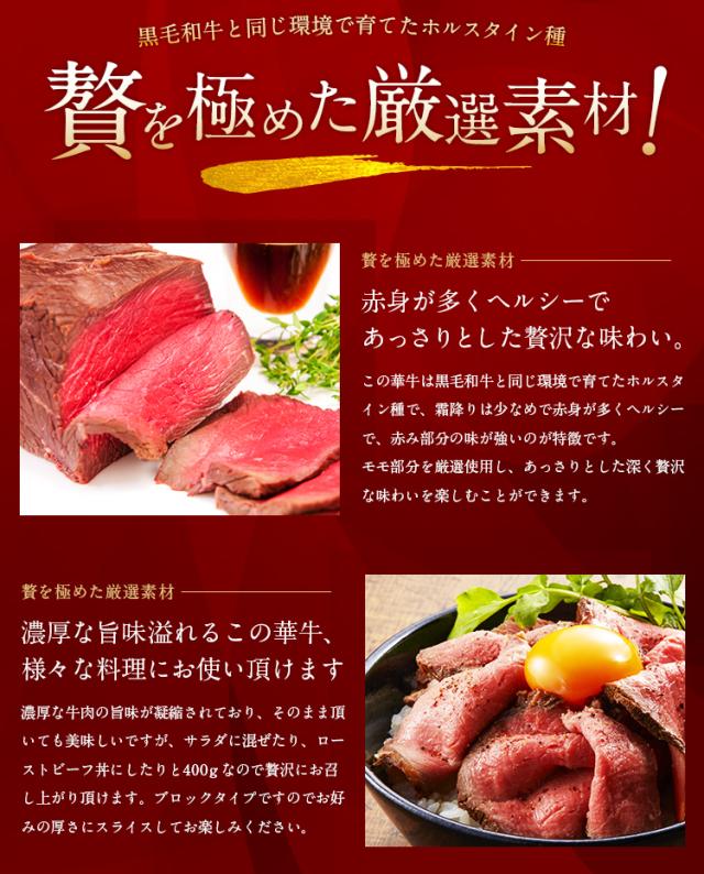 ローストビーフ 400g ハンバーグ 4個 この華牛 ブロック もも肉 牛肉 ステーキ肉 宮崎県産 国産 送料無料 ギフト 有田牧場 贈り物 お取り寄せ 熨斗 高級 グルメ 老舗 土産 特産品 福岡 宮崎 ローストビーフソース スライス クリスマス あったか 冬 [産直]