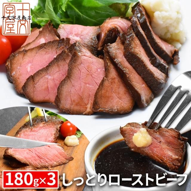 ソースの旨味がしみ込んだしっとり ローストビーフ 食べきりパック 180g×3 ローストビーフ丼 赤身肉 送料無料 牛肉 お取り寄せ 食べ物 ギフト 母の日 敬老の日 お中元 お歳暮 プレゼント atjs