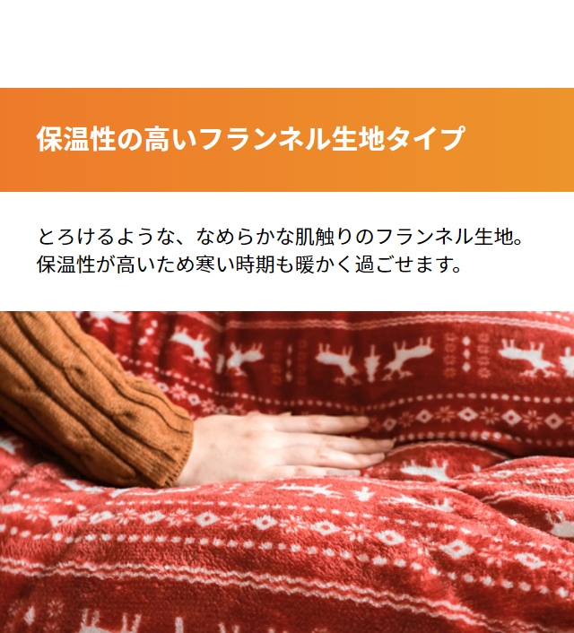 フランネル生地タイプ…表生地:フランネル生地 底生地:ポリエステル100%