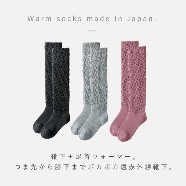 遠赤外線繊維でふんわり暖か。靴下+足首ウォーマー。全面に東レの「遠赤外線繊維ダイナホット」を使用。履いた瞬間からポカポカ。