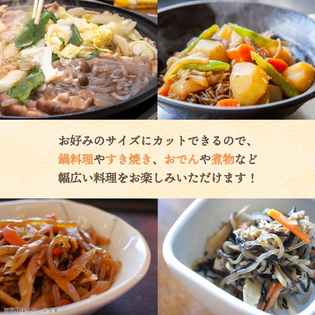 群馬県産こんにゃく粉を使用し、丹念に練り造り上げた伝統の糸こんにゃく大袋タイプです。煮込むと身が締まり歯ごたえが良くなります。