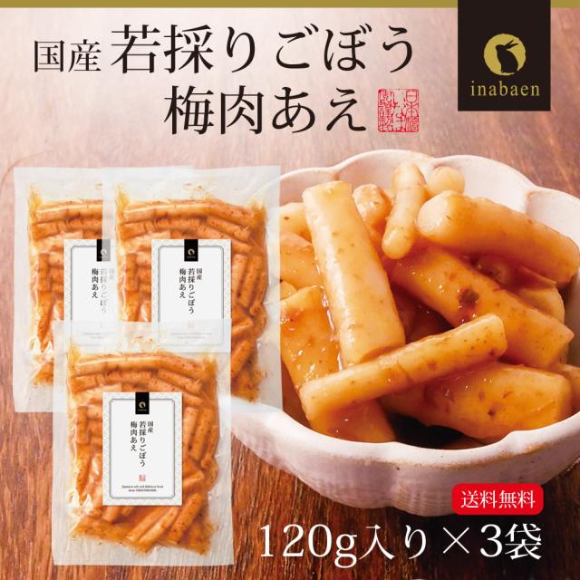 漬物 国産若採りごぼう 梅肉あえ 120g 3袋セット メール便送料無料 漬け物 お漬け物 国産 ギフト 贈り物 プレゼント お礼 贈答 内祝い 引越し祝い お祝い 手土産 健康 祝い 贈物 茶匠庵 お惣菜 時短 おかず 一人暮らし 食品 非常食