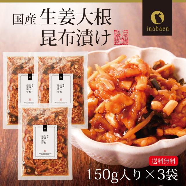 漬物 国産 生姜大根昆布漬け 150g 3袋セット メール便送料無料 漬け物 お漬け物 国産 ギフト 贈り物 プレゼント お礼 贈答 内祝い 引越し祝い お祝い 手土産 健康 祝い 贈物 茶匠庵 お惣菜 時短 おかず 一人暮らし 食品 非常食