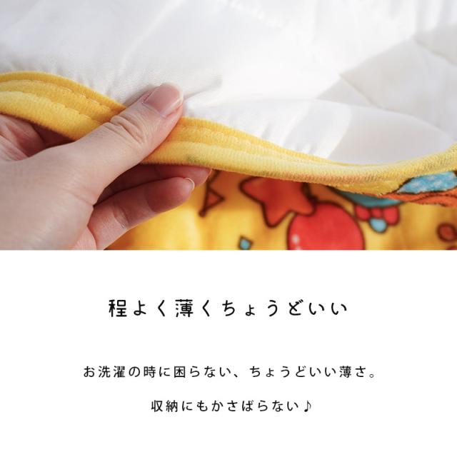 ・ふんわりなめらかフランネル生地 思わず頬ずりしたくなる抜群のなめらかな肌触りを持つ、あったか素材「フランネル」の毛布です。ふわふわやわらかなタッチが健やかに眠るお子様をほっこり暖めます。 ・かわいいアンパンマン柄アンパンマンやばいきんまん、コキンちゃんなどキャラクターがたくさんプリントされた、あったか毛布素材の敷きパッドです。賑やかなデザインに、さむ〜い冬もテンションアップ♪ ・四隅ゴムバンド付き裏面の4隅にはズレ防止のためのゴムバンド付き。お昼寝の時はもちろん、お布団にセットすれば夜の就寝時も活躍してくれます。 ・程よく薄くちょうどいいお洗濯の時に困らない、ちょうどいい薄さ。収納にもかさばらない♪ |