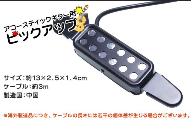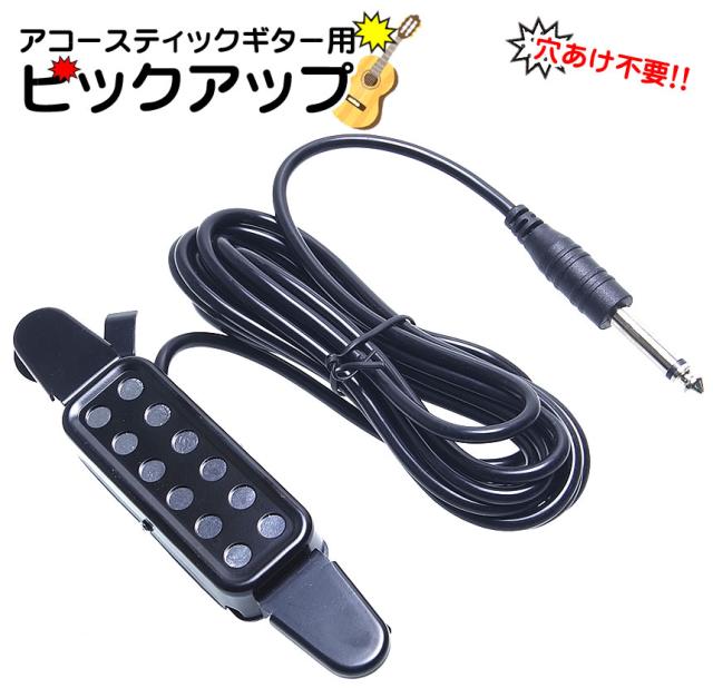 ピックアップ アコースティックギター用 簡単取付 シールド内蔵 エレアコ サウンドホール