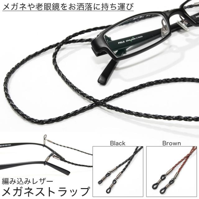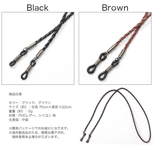 眼鏡 メガネ チェーン 編み込みレザー 革 ストラップ グラス コード ホルダー 紐 ヒモ 老眼鏡 シニアグラス おしゃれ メンズ レディース 男性用 女性用 ブラック ブラウン